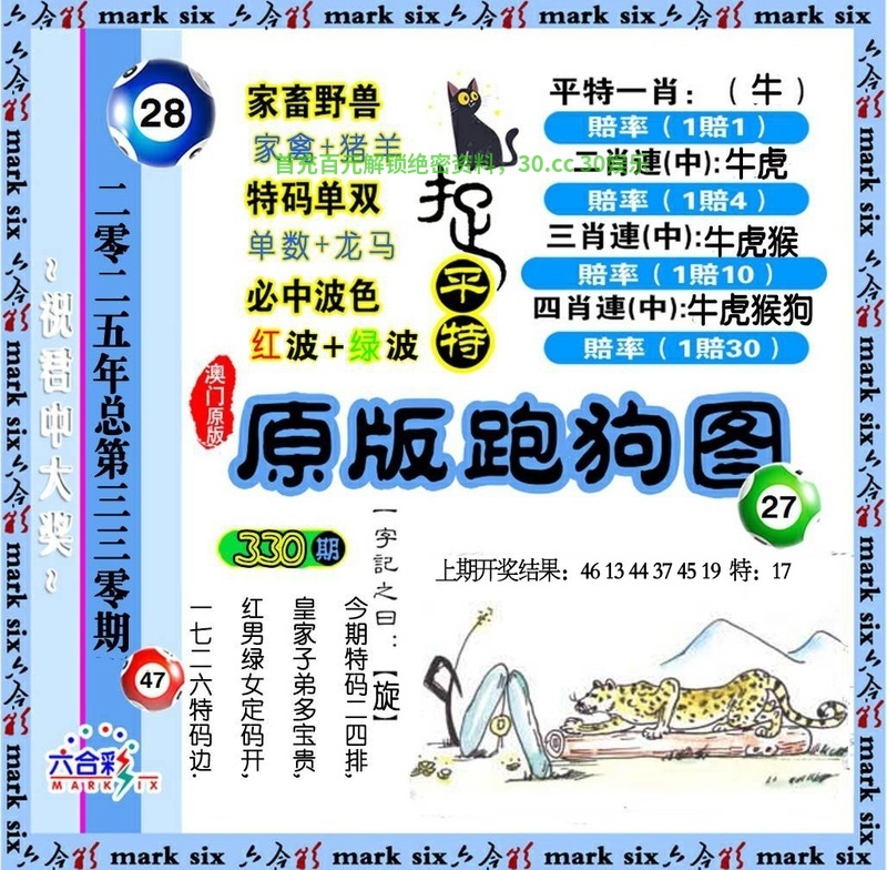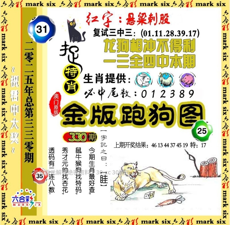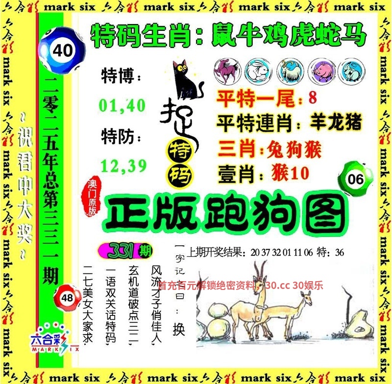 | 330期五肖 | 马龙鸡猴兔 | 开:马36 |