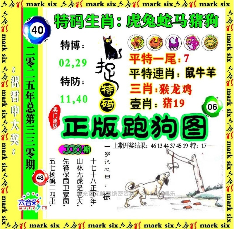 | 329期 | 狗 | 绿双 | 2尾 | 开牛17 |
