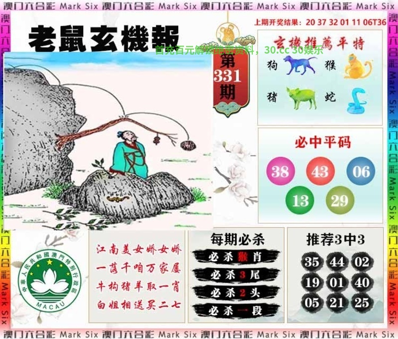 | 330期三肖 | 马龙鸡 | 开:马36 |