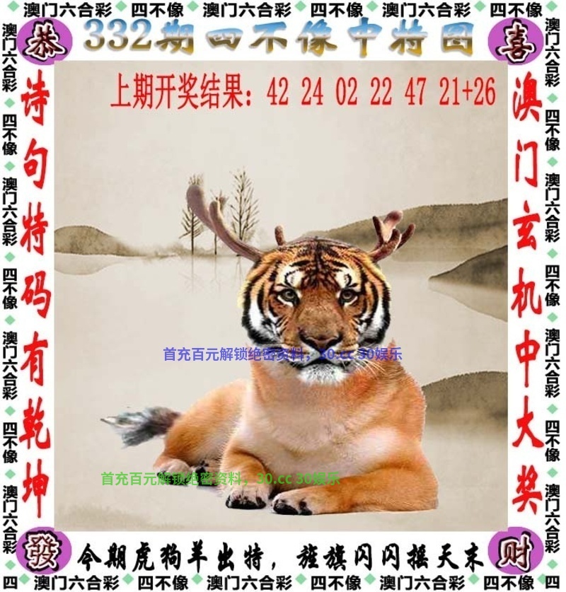 | 332期八肖 | 虎羊鼠龙鸡马牛狗 | 开:龙26 |